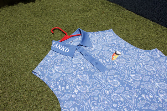 14-Blue Paisley Sleeveless Polo